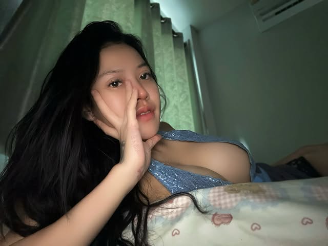 Dia baru bangun, masih rebahan di kasur hotel dengan selimut setengah menutupi tubuhnya. Mata masih sedikit sayu, ekspresi setengah sadar, tapi justru itu yang bikin semuanya terlihat natural… dan jujur, berbahaya.